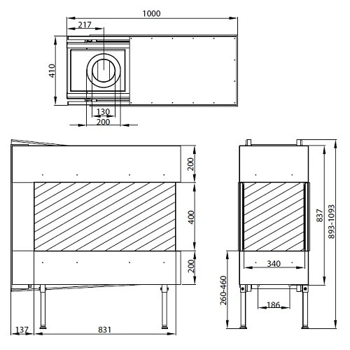 | Sichtscheiben | Panoramakamin: 3 Scheiben, dreiseitige-Kamine |