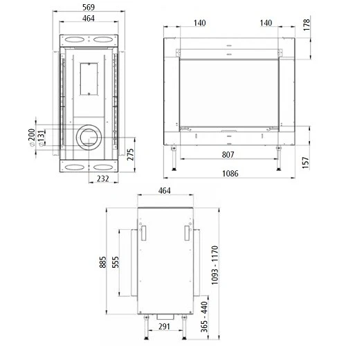 | Sichtscheiben | Tunnelkamin: 2 Scheiben, Durchsichtmodelle |