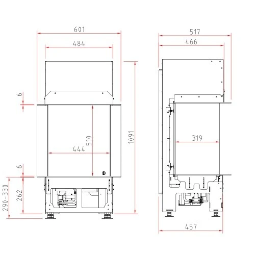 | Sichtscheiben | Panoramakamin: 3 Scheiben, dreiseitige-Kamine |