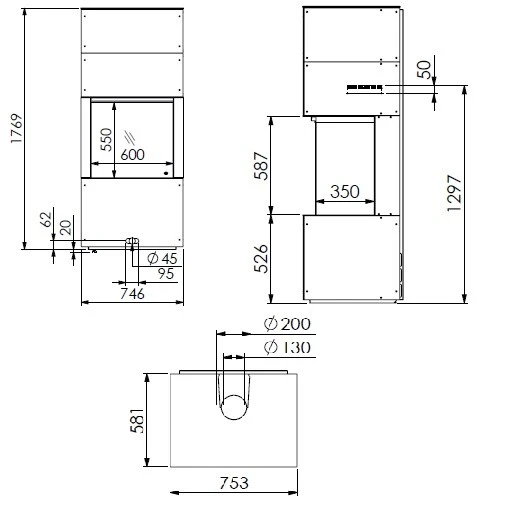 – Freistehendes Modell für eine Feuersicht von drei Seiten.