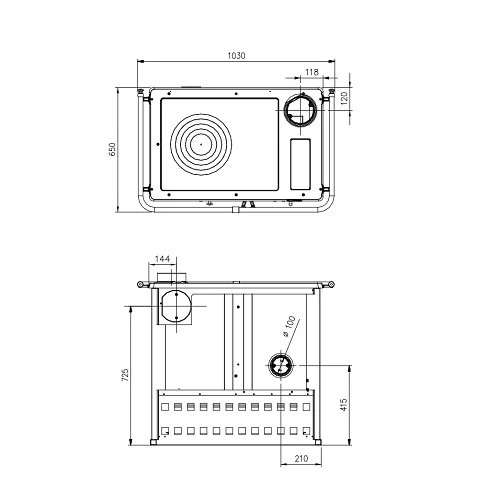 | Bauart | Raumluftunabhängig, Keramikglas, Holzschublade |