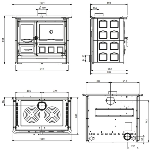 | Höhe bis Rauchrohranschluss (hinten) (mm) | 743 |