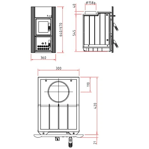 - Frontplatte: 640 x 360 mm oder 670 x 360 mm (Höhe x Breite)
