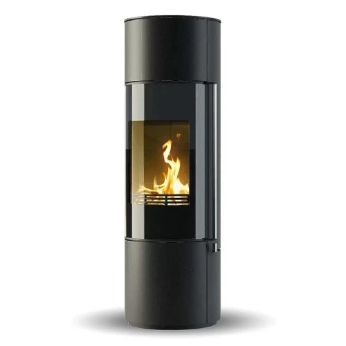 Der Kaminofen Omega High aus dem Hause Jydepejsen lässt mit seiner Leistung von 7 kW und vielen nützlichen Funktionen kaum Wünsche offen. Dieses Modell besticht mit seiner runden Form, einem schicken Griff sowie einer vollständig aus schwarzem Glas bestehenden Tür und bereichert als optisches Highlight nahezu jeden Aufstellraum. Dank des Sichtfensters bietet sich Ihnen ein wunderbarer Blick auf das prasselnde Feuer. Dabei entspricht Omega allen aktuellen Anforderungen und Möglichkeiten des Marktes. Ausgestattet ist er standardmäßig mit einer selbstschließenden Tür, zudem bietet der Ofen die Voraussetzung, um eine Frischluftzufuhr zu ermöglichen.