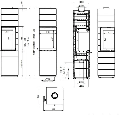 | Bauart | Panoramascheibe, optionaler Speicherofen, optional Drehbar |