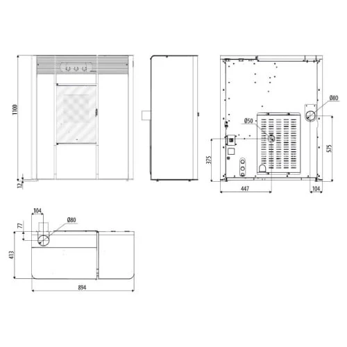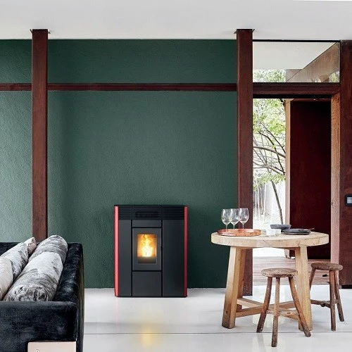 – Hydro-Pelletofen mit Seiten aus Stahl in den Farben Dark, Silver, Bordeaux oder White. Möglichkeit, die Lüftung komplett auszuschalten.
