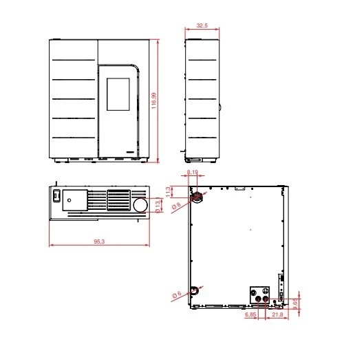 – Pelletofen aus hochwertigen Materialien wie einer Brennschale aus extra starkem Gusseisen, während die Verkleidung aus lackiertem Stahl und Glas ist.