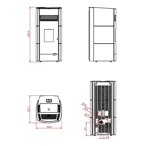 – Für den RLU-Betrieb geeigneter Pelletofen mit externer Verbrennungsluftzufuhr, der aus hochwertigen Materialien besteht, wie zum Beispiel einer Brennschale aus extra starkem Gusseisen. Stahlstruktur mit Keramikverkleidung.